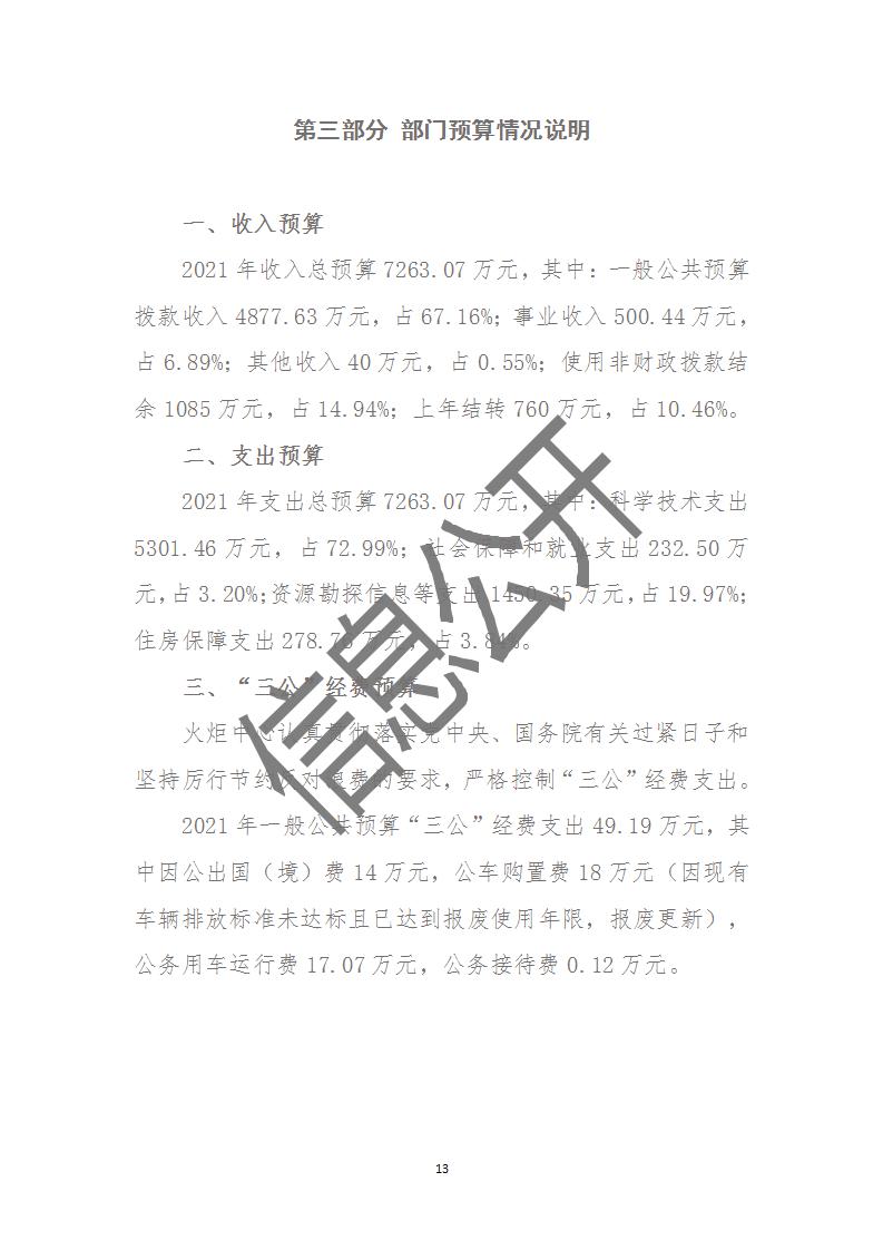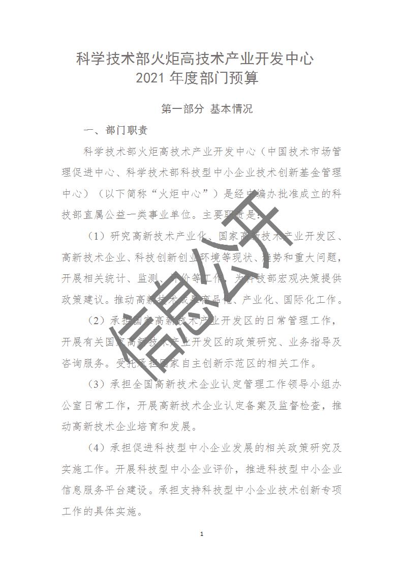 科學(xué)技術(shù)部火炬高技術(shù)產(chǎn)業(yè)開發(fā)中心2021年度部門預(yù)算