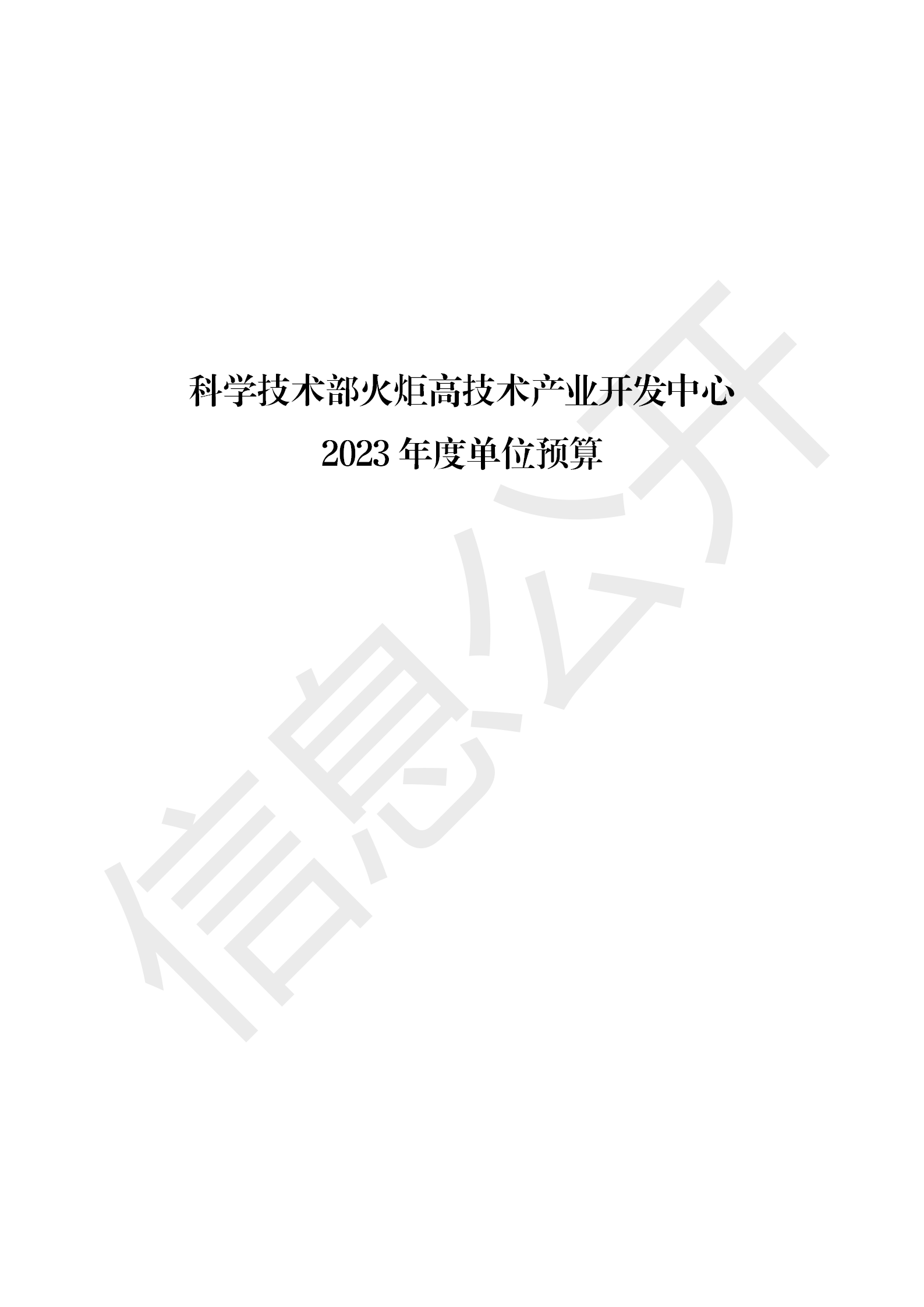 科學技術部火炬高技術產業開發中心2023年度單位預算