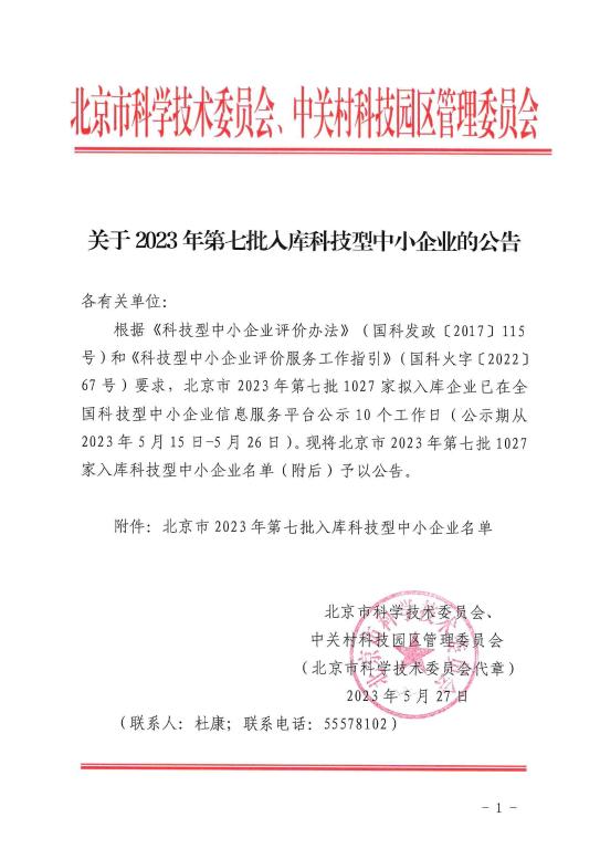 北京市2023年第7批入庫(kù)科技型中小企業(yè)名單公告正文.jpg PICTURE