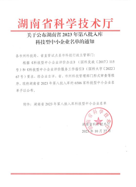 湖南省2023年第8批入庫科技型中小企業(yè)名單公告
