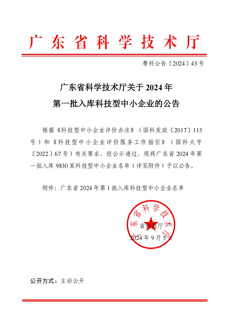 廣東省2024年第1批入庫科技型中小企業(yè)名單公告