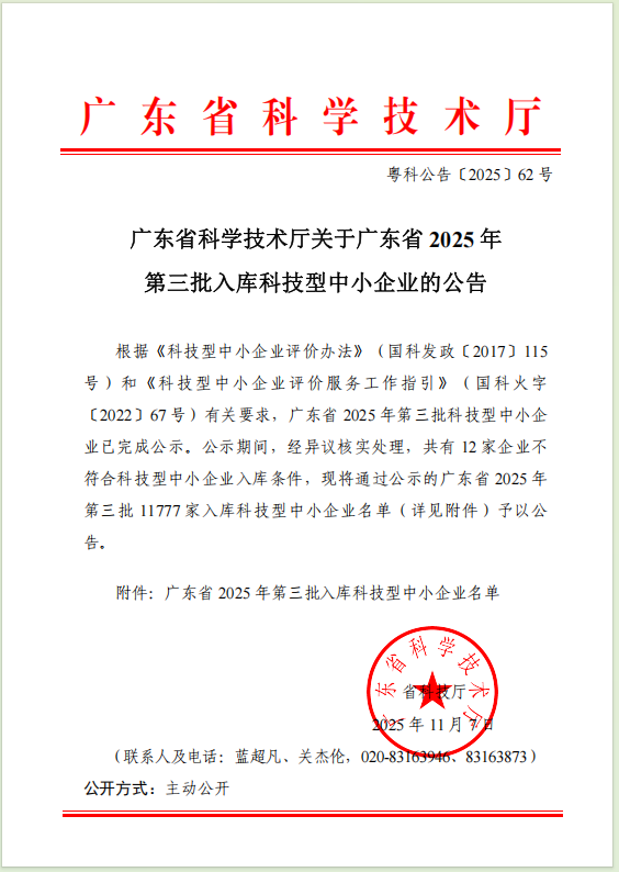 廣東省2025年第3批入庫科技型中小企業名單公告正文.jpg PICTURE