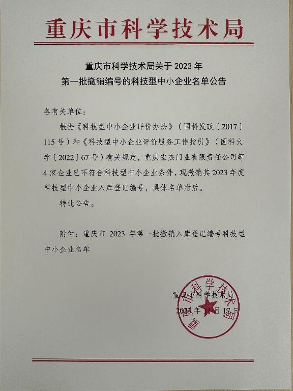 重慶市2023年第1批撤銷編號科技型中小企業名單.pdf FILE