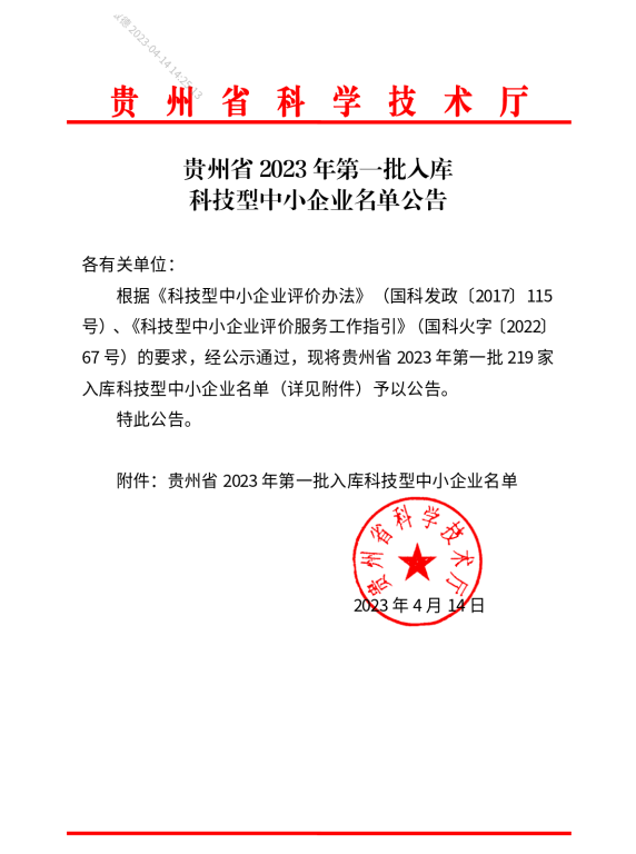 貴州省2023年第1批入庫科技型中小企業名單公告正文.jpg PICTURE
