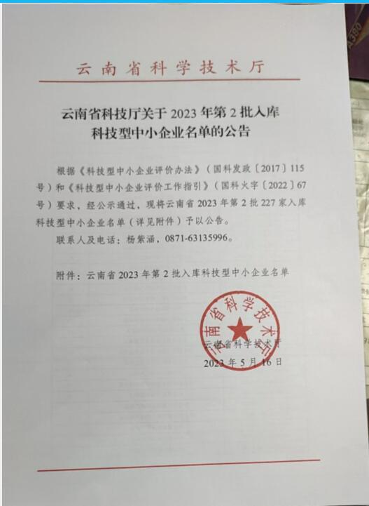 云南省2023年第2批入庫科技型中小企業名單公告正文.jpg PICTURE