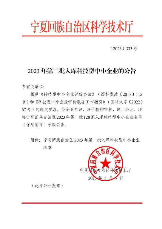 寧夏回族自治區(qū)2023年第2批入庫科技型中小企業(yè)名單公告