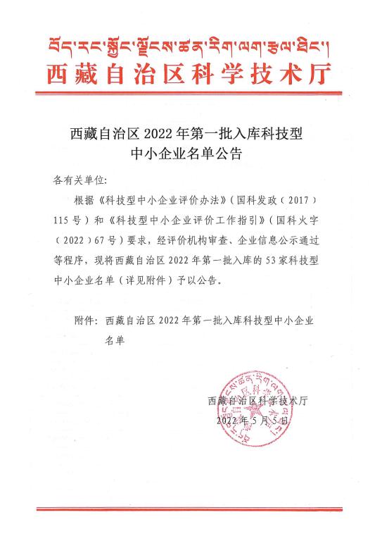 西藏自治區2022年第1批入庫科技型中小企業名單公告正文.jpg PICTURE