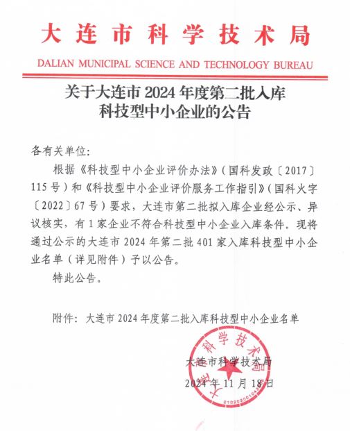 大連市2024年第2批入庫科技型中小企業名單公告正文.jpg PICTURE