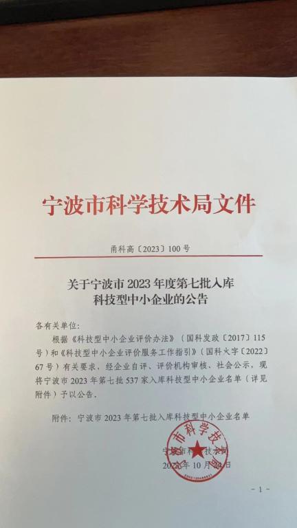 寧波市2023年第7批入庫(kù)科技型中小企業(yè)名單公告正文.jpg PICTURE