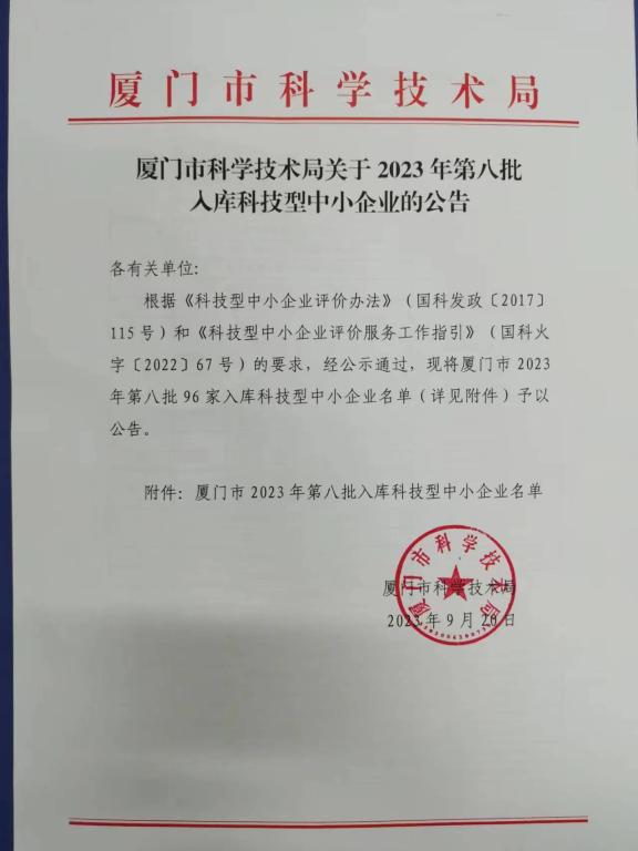 廈門市2023年第8批入庫科技型中小企業(yè)名單公告